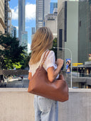 View productMade from soft shrunken pebble leather, this slouchy bag blends timeless style with all-day versatility. Featuring a padded 15-inch laptop sleeve, multiple spacious compartments and premium gold detailing, it's designed for those who are always on the move with effortless style and practicality.